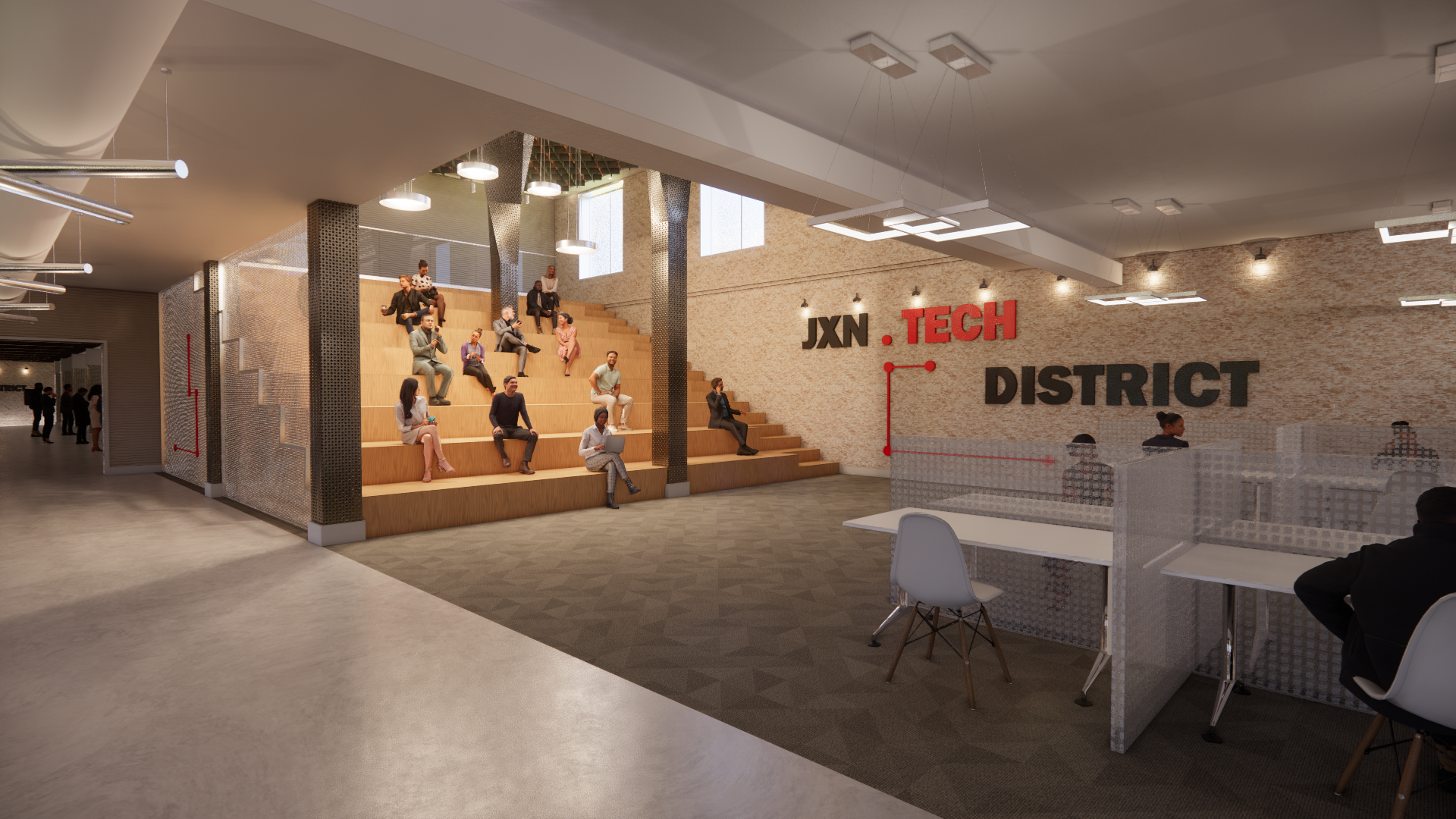 The Jackson Tech District is a $150 Million Dollar development planned near downtown Jackson. The headquarters and Innovation Station are just two features of the first phase of the mixed-use JXN Tech District.