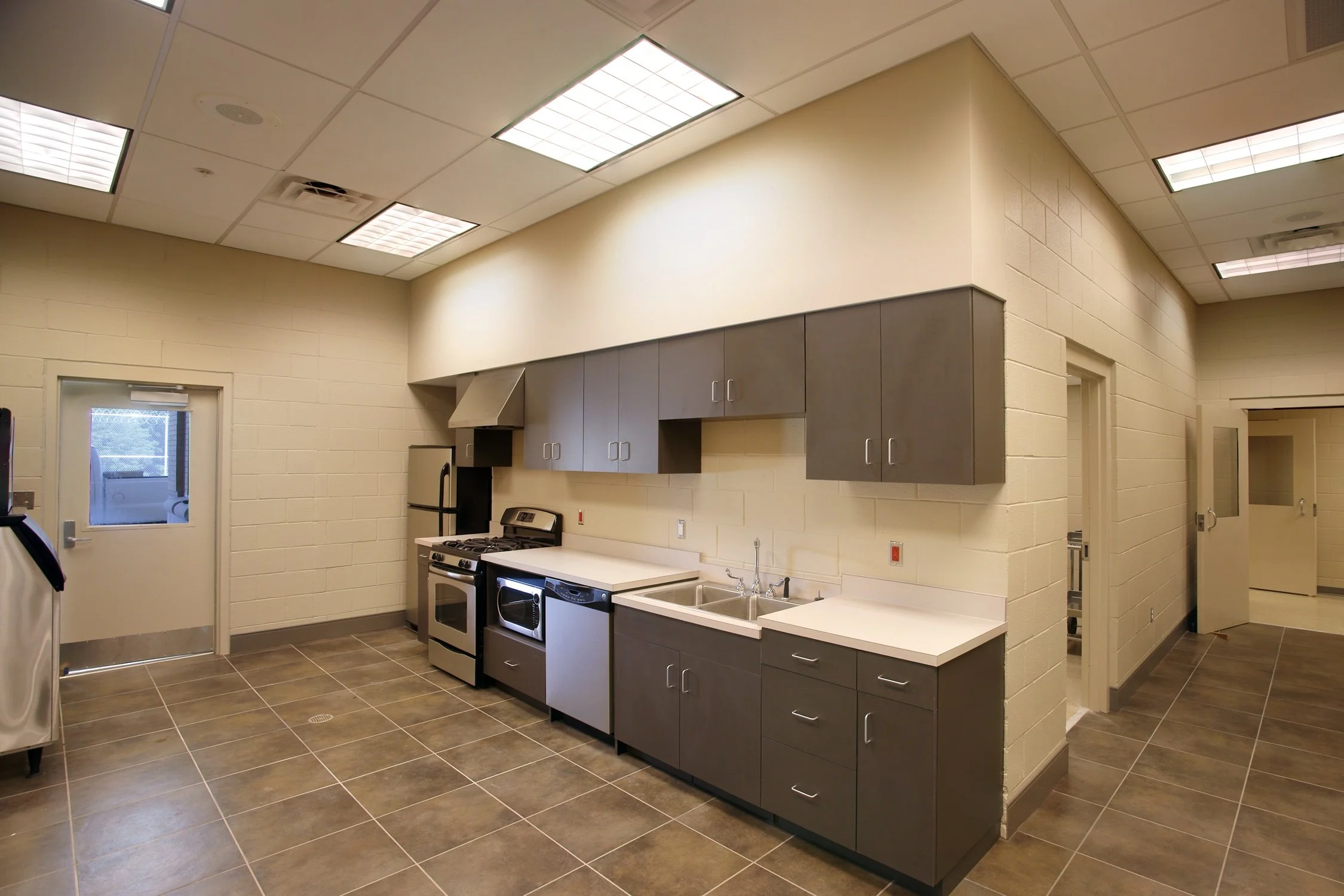The administrative component is constructed of a steel frame with metal studs and brick veneer. This portion includes a courtroom, judge’s chambers, probation, counseling, and other administrative offices. An intake area includes the secure receiving, processing, shower, holding, detox, and minor medical treatment areas which support the receiving of a juvenile detainee from the community, and then safely preparing him or her for a stay in the housing unit.